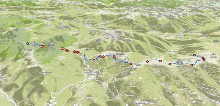 1. Schlechtwetteralternative: Sollte das Wetter schlecht sein, kannst du von der Kreuzwiesenalm zur Ronerhütte zurückkehren und von dort mit einem Shuttle nach Mühlbach fahren. Von Mühlbach aus erreichst du mit dem Bus St. Martin in Thurn und wanderst von dort zur Schlüterhütte..