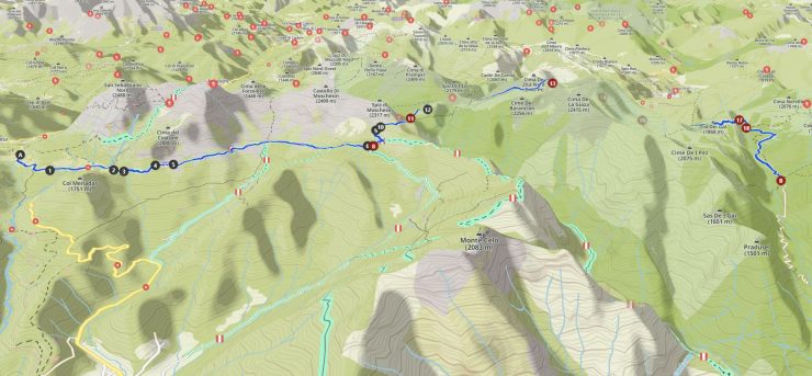 - Ende an der Pian de Fontana-Hütte: Wer die Etappe verkürzen möchte oder am nächsten Tag den Klettersteig nehmen will, sollte bereits zwei Stunden früher in der Pian de Fontana-Hütte enden. Diese Hütte ist jedoch oft schon früh ausgebucht, sodass die Bianchet-Hütte eine gute Alternative darstellt.