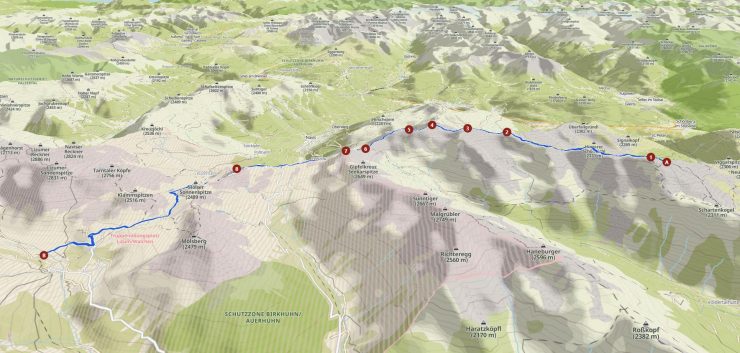 2. Schlechtwettervariante Glungezerhütte zur Lizumer Hütte: Solltest du bereits auf der Glungezerhütte sein und die Seven TuXer Summits sind nicht begehbar, steigst du hinab in Richtung Voldertalhütte und gehst dann über weniger anspruchsvolle Wege, dafür deutlich länger (18km) bis zur Lizumer Hütte. Planungsvariante 09c.